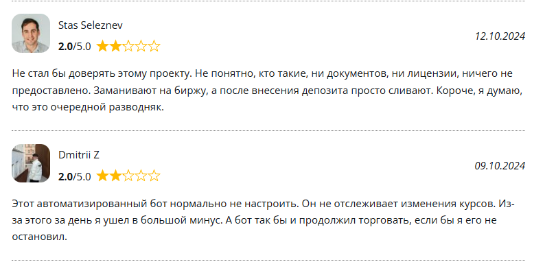 Отзывов о телеграмм-боте не так много, но они есть – все отрицательные. Пользователи уверены, что это развод – бот заманивает на финансовую биржу, уверяет внести депозит, а потом «сливает» сделки. Никаких гарантий у пользователей нет, о рисках остаться в убытке Ton Exchange bot не предупреждает, только о 100%-ной возможности заработка. Трейдеры жалуются, что настроить бот невозможно, он не отслеживает изменения курса, в результате чего инвесторы остаются в большом минусе.