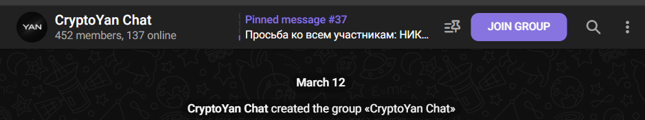 Сам чат CryptoYan chat был зарегистрирован в марте.