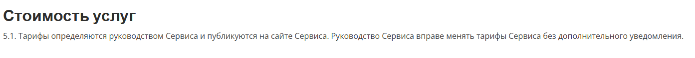Кроме того, в правилах указано, что администрация может менять тарифы и не сообщать об этом клиентам.