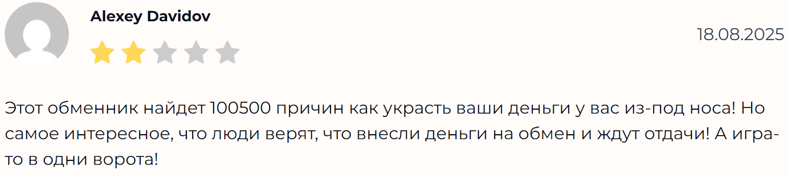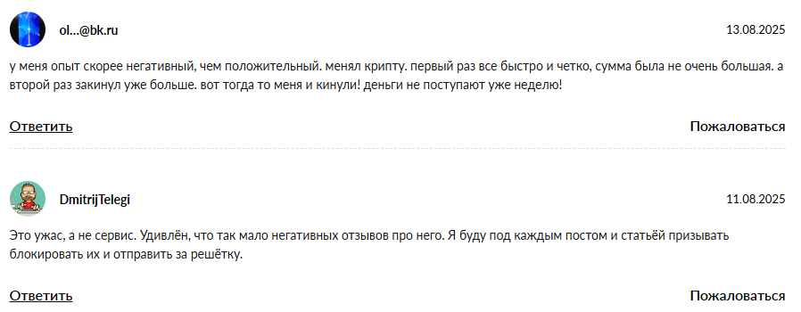 Положительных отзывов об этом сервисе в интернете мы не нашли. Разработчики обменника не создали раздел с отзывами или форум для пользователей.