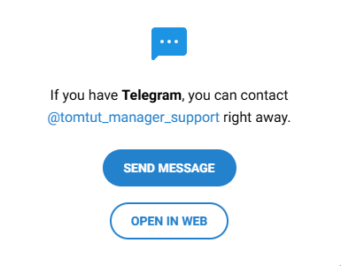 Авторы обещают круглосуточную поддержку через Telegram tomtut_manager_support. По состоянию на 9 сентября 2025 года аккаунт удален.