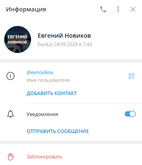 Профессиональный трейдер ведет инвестиционную деятельность на различных телеграмм-каналах, постоянно меняя контент и советуя различные активы для инвестирования. На сентябрь 2024 года основной канал “Торгуем криптой — Евгений Новиков” удален вместе со всеми публикациями.