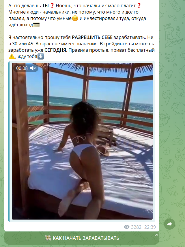 - В телеграмм-каналах рекламируются скам биржи, явный признак мошенничества с привлечением рефералов.