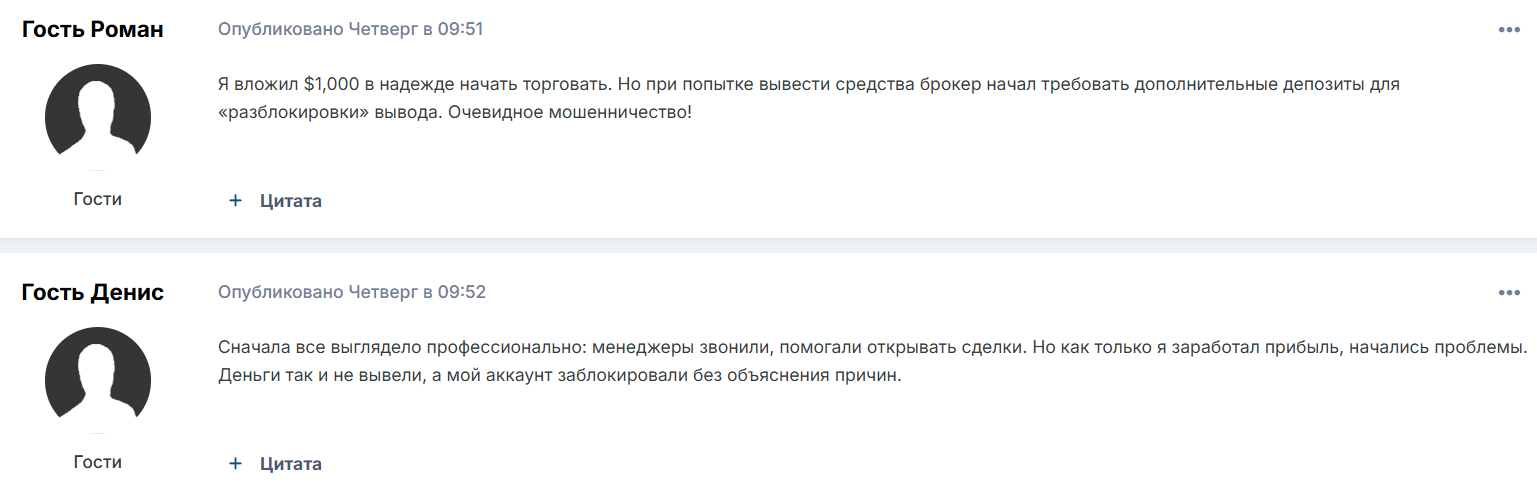 Административная группа активно работает с клиентом до того момента, пока он не решит вывести заработанные активы. При попытке осуществить перевод аккаунт блокируется. Заработанные средства замораживаются, а комиссионный процент значительно возрастает. Общение с клиентом приостанавливается. Техническая поддержка игнорирует все обращения и жалобы.