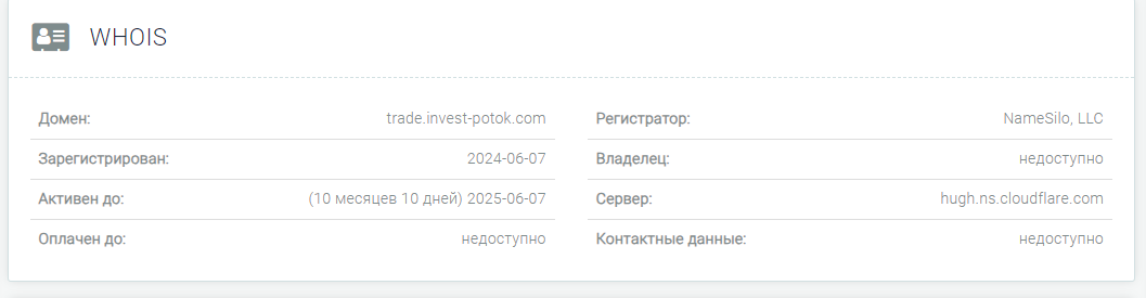 Доменное имя Trade Potok Invest io куплено в 2023 году, сайт имеет нулевую посещаемость. Второй адрес в сети trade.invest-potok.com зарегистрирован в июне 2024 года, ситуация с количеством активных пользователей такая же. Есть зеркала с адресами potok-invest.capital и пр. Контора предлагает пользователям спотовую и фьючерсную торговлю криптовалютами, акциями, драгоценными металлами, индексами и валютными парами. На сайте указан адрес офиса в Санкт-Петербурге, значит, контора обязана иметь аккредитацию от Центробанка. Но в реестре российского регулятора компания не числится, что говорит о нелегальном предоставлении финансовых услуг. Оперативной связи с поддержкой Potok Invest нет, так как для обращений оставлен только адрес электронной почты. Социальные сети брокер не ведет.
