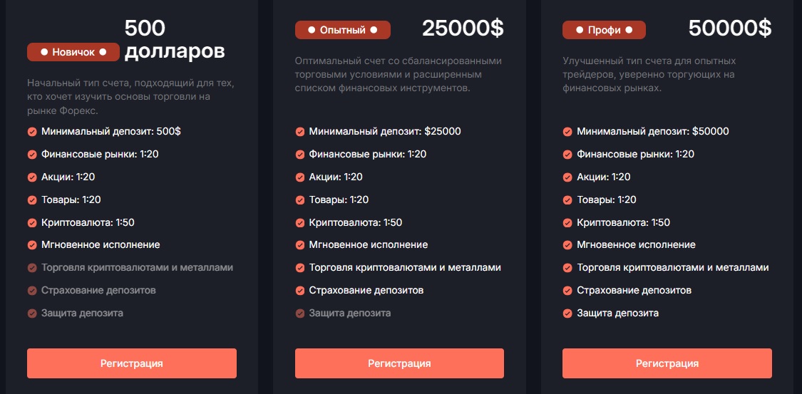 Разница между ними только в доступе к активам и защите вкладов. Условия по кредитному плечу одинаковые для всех вариантов: