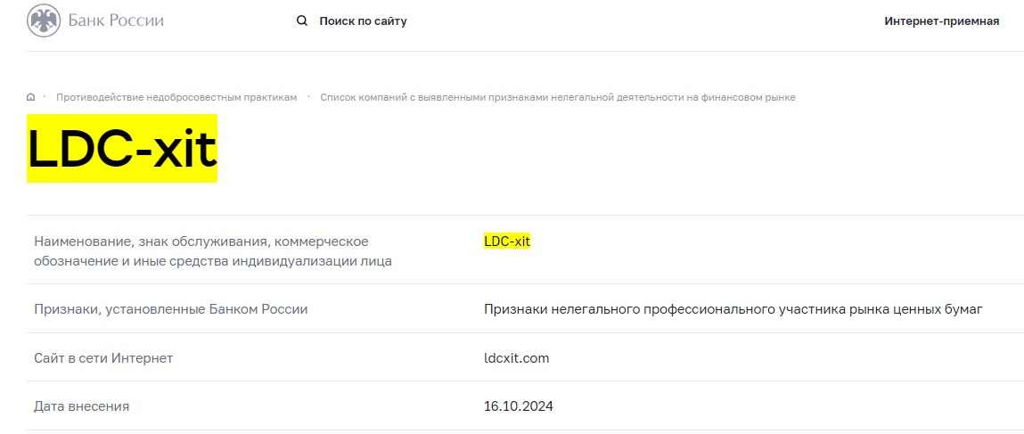 Брокерская контора LDC-xit — лохотрон на 100%. Явными признаками мошенничества являются: