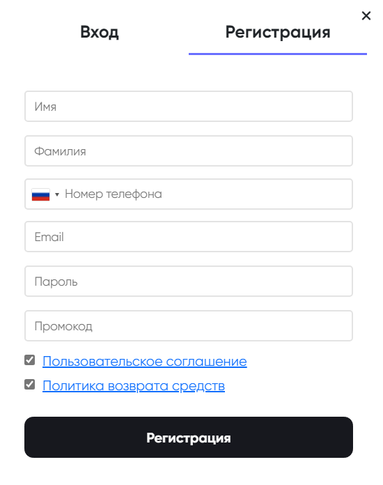 Чтобы внести депозит на баланс кошелька необходимо пройти регистрацию, в которой указать все контактные данные. После этого надежный брокер предложит выгодное обслуживание – постоянная поддержка, возможность быстро совершать сделки, отслеживать спреды на терминале и следить в личном кабинете за собственными убытками и прибылью.