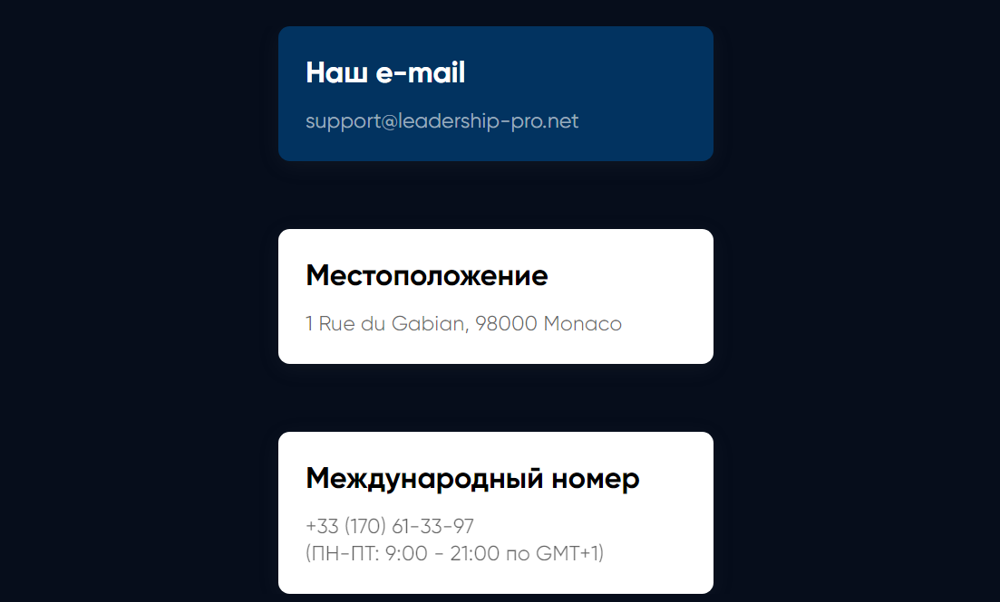 Не все, кто торговал с Trade Leadership Business получают заслуженную прибыль, поэтому в статье мы обсудим безопасность сотрудничества и возможные риски, узнаем на каких рынках можно торговать на сайте брокера и какими лицензиями может регулироваться его работа, а также как можно пополнить счет и выводить деньги, рассмотрим отзывы о Leadership Pro Net Trade и на основе информации сделаем выводы о бирже.