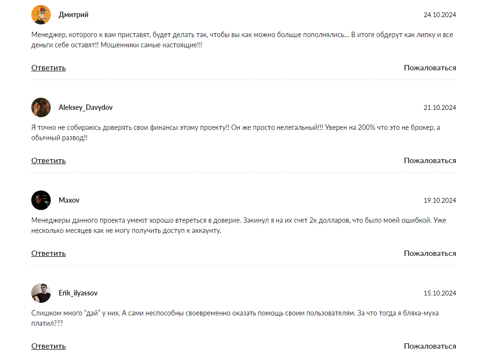 • отзывы о брокере тоже не улучшают его репутацию, поэтому доверять компании нельзя.