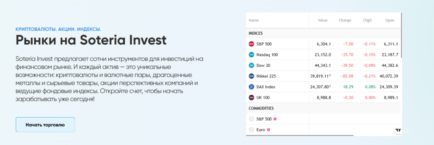 На сайте soteriainvest pro разместился очередной «успешный» брокер из Великобритании. Брокерская организация предлагает трейдерам с любым доходом лучший терминал в Европе, сделки с 300+ инструментами, узкие спреды, выгодные комиссии. Можно ли заработать деньги с этим проектом – читайте в нашей новой статье.