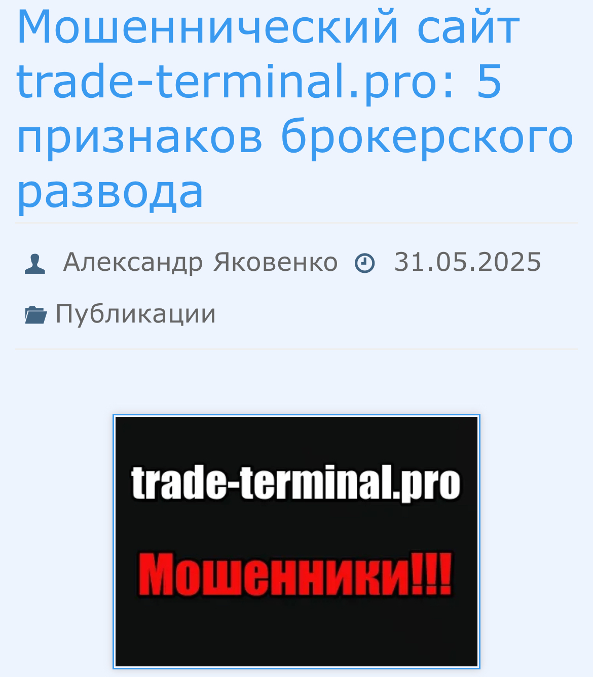 В открытом доступе ситуация обратная: на тематических форумах комментариев нет. Однако, есть статьи и заявления в соцсетях, что «Трейд Терминал» — мошеннический сервис. Эксперты рассказывают, что после внесения депозита менеджеры начинают раскручивать клиентов на новые вливания.
