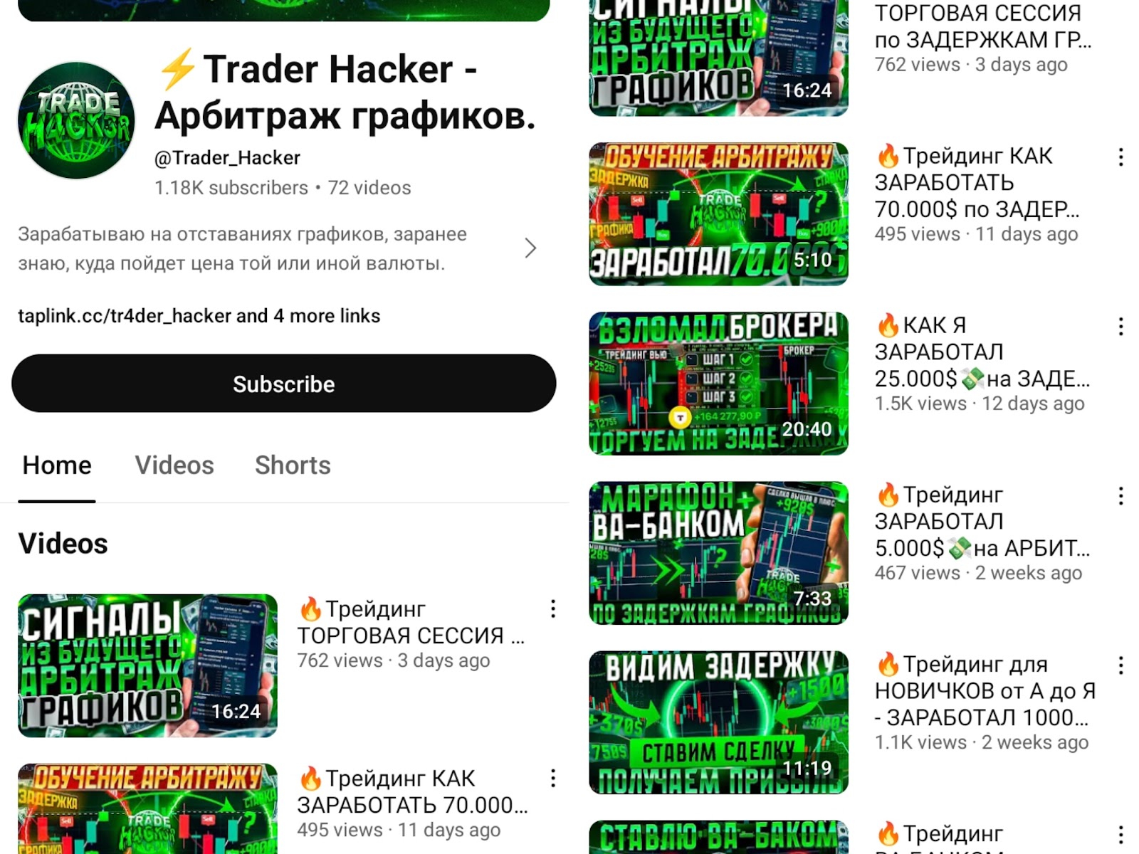 Обзор Телеграмм и Ютуб каналов Trader Hacker Арбитраж Графиков
