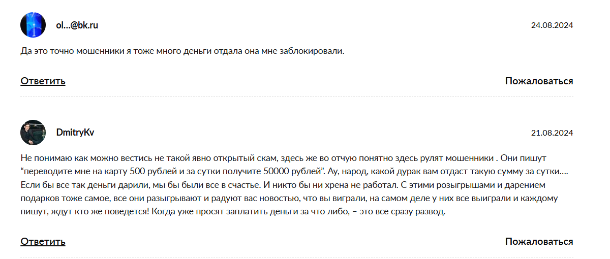 - У проекта есть очень много негативных отзывов, в которых говорится о мошенничестве, значит, можно предположить о возможном обмане пользователей.
