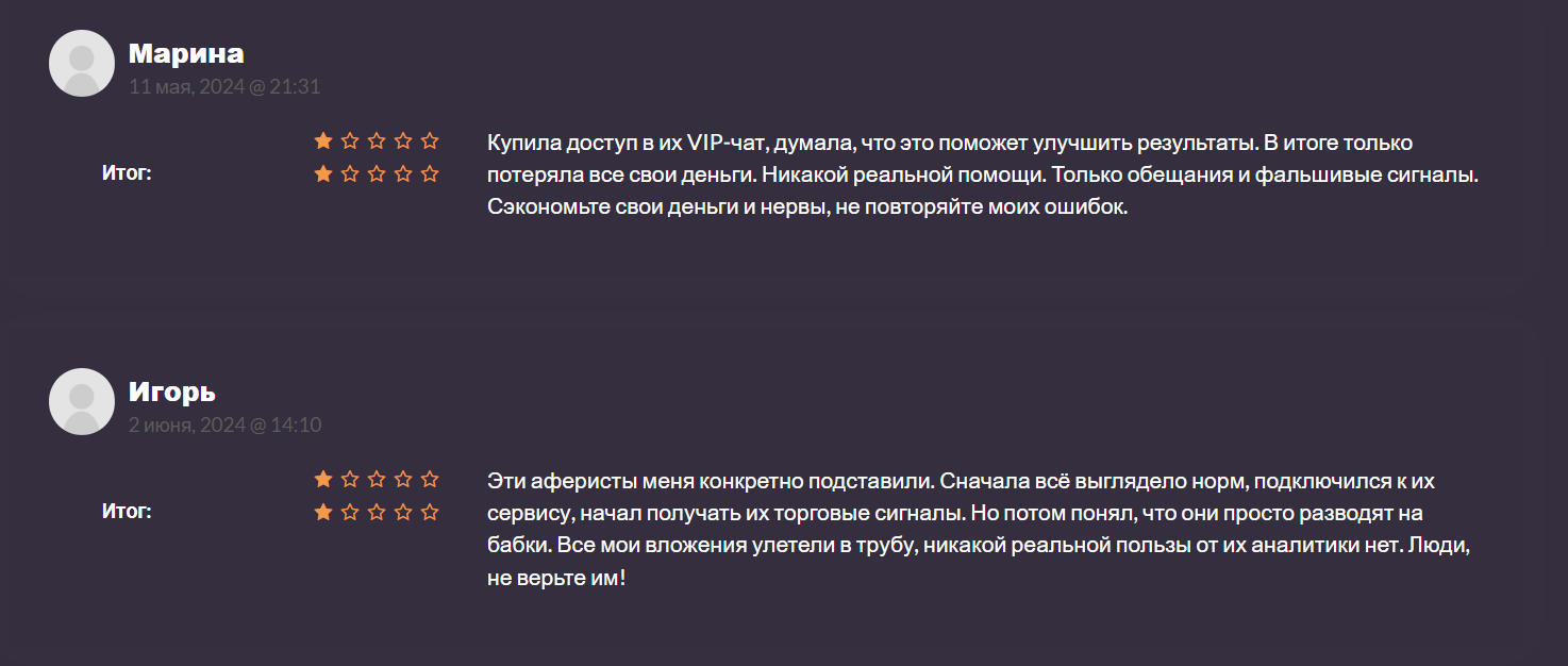 В связи с довольно большим количеством негативных отзывов о самом скринере и сигналах, можно начать подозревать компанию в мошенничестве.