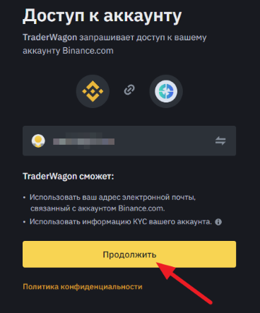 Чтобы зарегистрироваться на платформе, нужно завести аккаунт на площадке по номеру телефона или электронному адресу либо можно войти на TraderWagon через свою страницу на бирже Binance. Для этого нужно нажать кнопку с названием «Войти через Binance», которая перенаправит на ее сайт. После этого система свяжет аккаунты, пользователя вернут на сайт «Трейдервагон», где ему надо будет согласиться с условиями пользования. После сохранения пароля можно подключить двухфакторную идентификацию.
