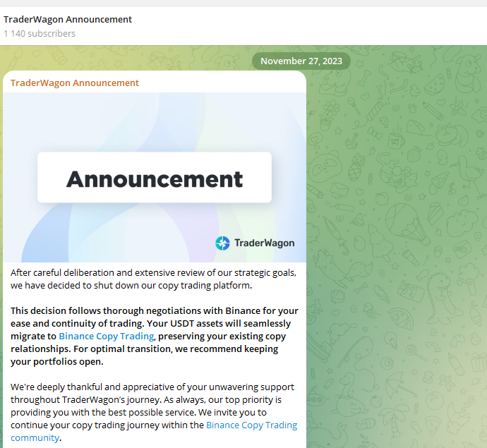 В социальных сетях проект был представлен в Телеграмм, но канал TraderWagon Announcement давно не обновляется, последний пост был в 2023 году, так что актуальной информации там явно нет.