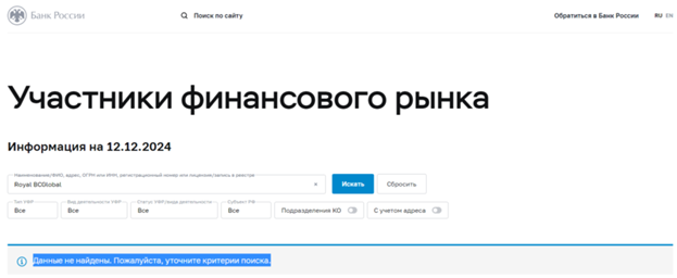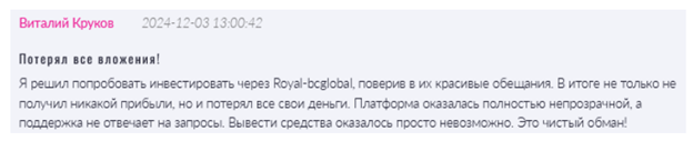 В интернете о Royal Bcglobal оставляют негативные отзывы. Клиенты пишут, что столкнулись с мошенничеством.