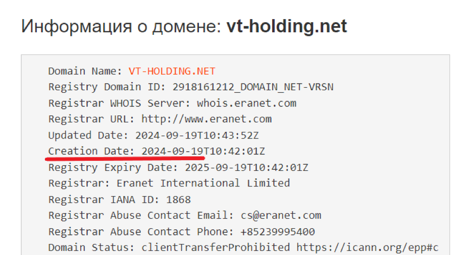 Рассматриваемый проект, по словам создателей, работает 16 лет. При этом домен веб-ресурса зарегистрирован в 2024 году. Это значит, что создатели публикуют фейковые сведения о финансовом посреднике.