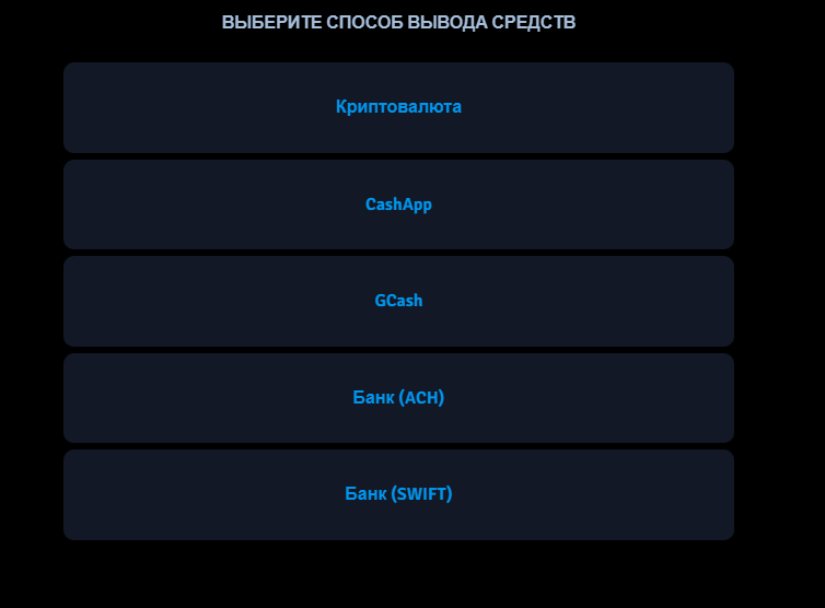 Конкретных цифр по спредам и комиссиям на сайте нет, только общие слова про узкие спреды и быстрое исполнение.Для пополнения счета нужно перевести средства в Bitcoin или USDT через цифровой кошелек. Минимальная сумма для работы с копитрейдингом составляет около $300 без указания доходности по продуктам. Вывод денег доступен через криптовалюту, CashApp, GCash и банковские переводы ACH и SWIFT.