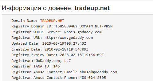 Официальный сайт «Трейдап Нет» в настоящий момент недоступен. Разработчики указывают, что сервису уже более десяти лет, однако подробностей о пути развития компании нет. География распространения включает уже 110 стран. Клиентами брокера уже стало 13 тысяч пользователей. Проверка домена показала, что он был зарегистрирован 15 лет назад, но изменения вносились только в 2025 году.