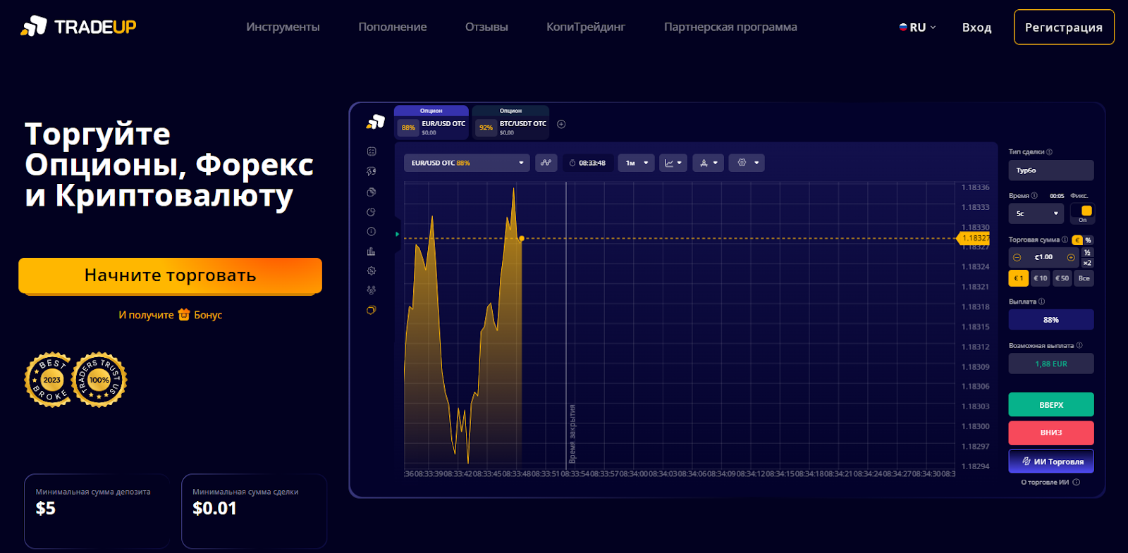 Об инвестиционной платформе tradeup net отзывы в сети оставляют желать лучшего. Платформа, в свою очередь, заявляет о широком функционале. Брокер предпочитает работать с бинарными опционами, рынком Форекс и криптой. Пользователям он обещает выгодные предложения и заработок. Однако, отзывы в сети этому противоречат. Так ли это на самом деле, tradeup брокер выводит ли деньги, рассмотрим в статье.