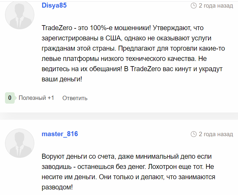 В отрицательных отзывах о TradeZero люди уверяют, что компания занимается мошенничеством. По их словам, брокер предлагает для торговли площадки и спреды, которые заведомо приводят к убытку. Многие пишут, что разработчики проекта воруют деньги прямо со счета. Они говорят, что эта биржа является разводом для новичков.