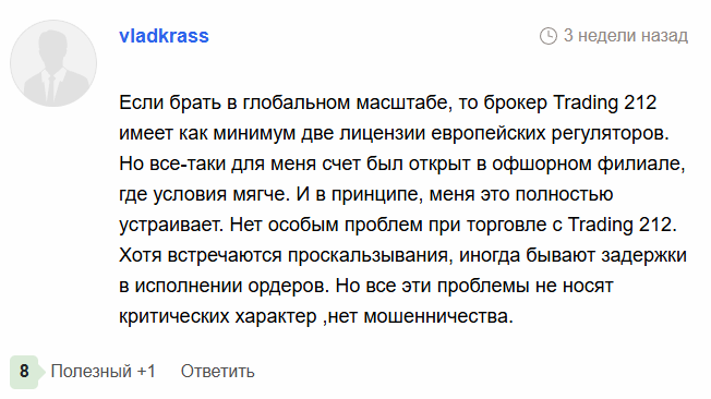 Если вы являетесь клиентом Трейдинг 212, обязательно расскажите в комментариях о своих впечатлениях. Ваше сообщение поможет другим пользователям сделать верные выводы.