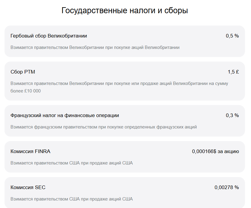 Еще и стоит учитывать налоговые государственные сборы. Да, брокер не может на них повлиять, однако помнить о них тоже нужно.
