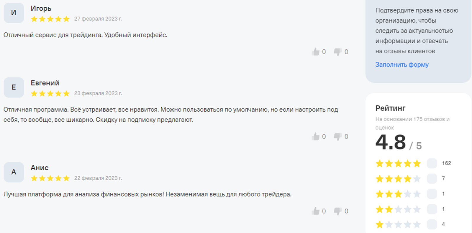 На сайте известного российского брокера «Тинькофф» на подписку Tradingviev com масса положительных отзывов.