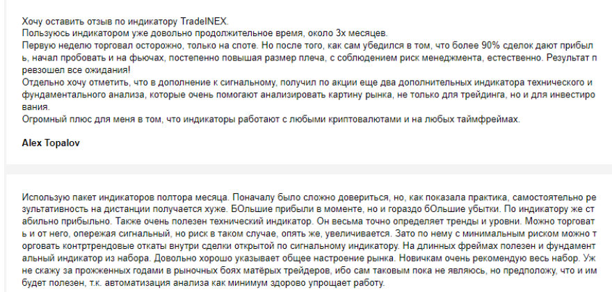 Отзывы о Tradeinex есть только на официальном сайте трейдера, где довольные пользователи отмечают прекрасные учебные материалы и качество сигналов. Только они осветляют репутацию трейдера.