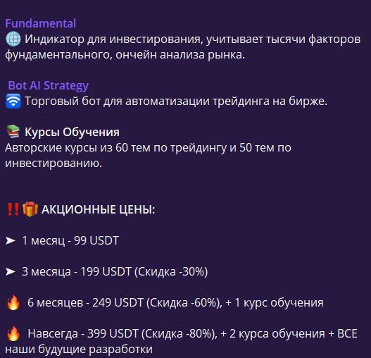 Плюс, в канале часто постятся предложения покупки сигналов, чтобы эффективно торговать активами. При этом автор обещает нам системное получение прибыли. Такие предложения обычно поступают от мошенников и имеют риск оказаться разводом.