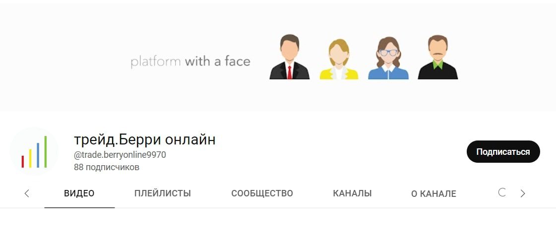 • YouTube — видео-канал, на котором размещаются рекламные и презентационные ролики компании. Ограниченный объем контента сказался и на количестве пользователей — 88 человек. Ссылка для доступа к странице — youtube.com/channel/UCBAu4DnPGxNOZdn4L-zd58A. Ютуб ТрейдБерри