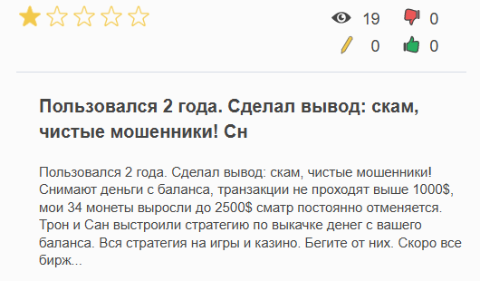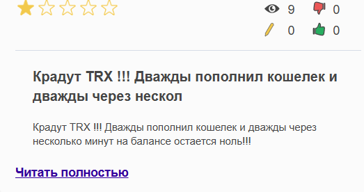 В сети есть различные негативные комментарии о данном кошельке для криптовалют, пользователи ставят низкие оценки и пишут в отзывах о Tron Wallet, что авторы крадут деньги. Участники несколько раз пополняли кошелек и их Trx пропадали со счетов, баланс оставался пустым.