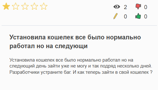 Некоторые пишут о том, что кошелек в какой-то момент перестает работать. Люди не могут зайти в свой аккаунт.