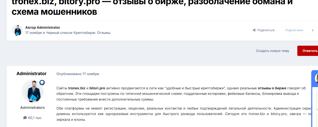 Отдельная проблема – почти полное отсутствие пользовательских откликов. Создаются впечатление, что о таком сервисе никто не знает. Всё, что можно найти – это предупреждения о том, что связываться с “Тронекс” не стоит. И обзоры на биржу, где пишется, что это мошенники.
