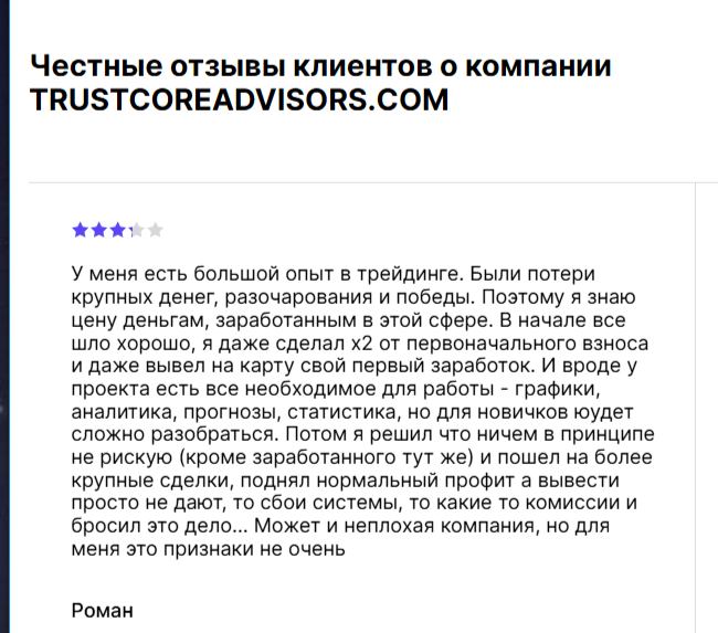 Обзор брокера Trustcore: отзывы реальных пользователей и анализ деятельности инвестиционной платформы Trust Core