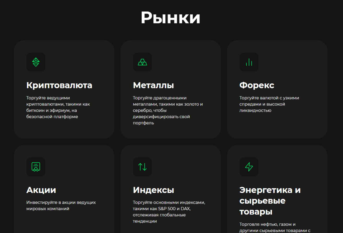 Сомнительный посредник приглашает новичков и опытных трейдеров торговать на многофункциональном терминале для ПК и мобильных устройств. Здесь можно совершать прибыльные сделки с валютными парами, криптой, драгоценными металлами и другими активами. Всего клиентам брокерской организации доступны 300+ торговых инструментов. Своими главными преимуществами брокер считает: