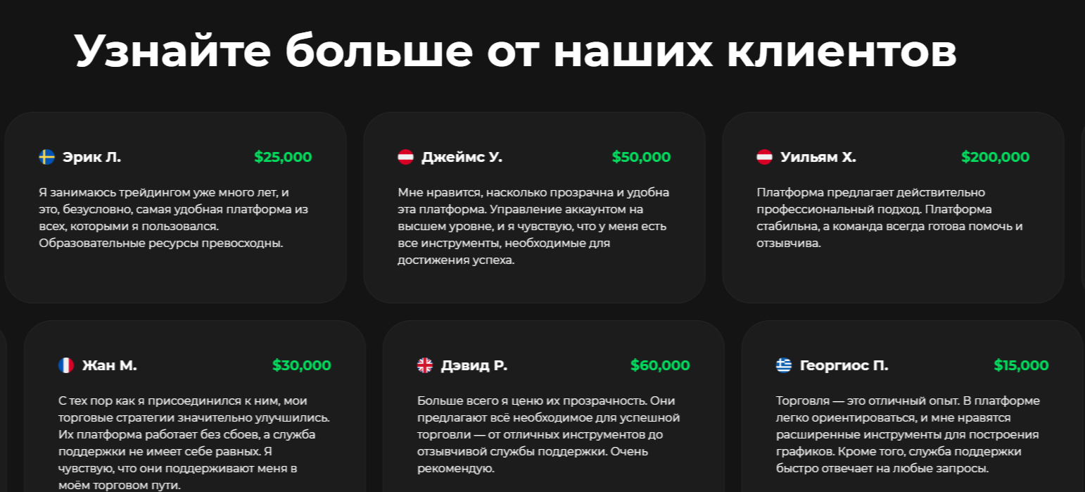 Наша команда обнаружила в сети позитивные комментарии о деятельности посредника. Размещены положительные отзывы на сайте trustvestltd com. Они не вызывают никакого доверия, так как могут быть написаны администрацией портала.