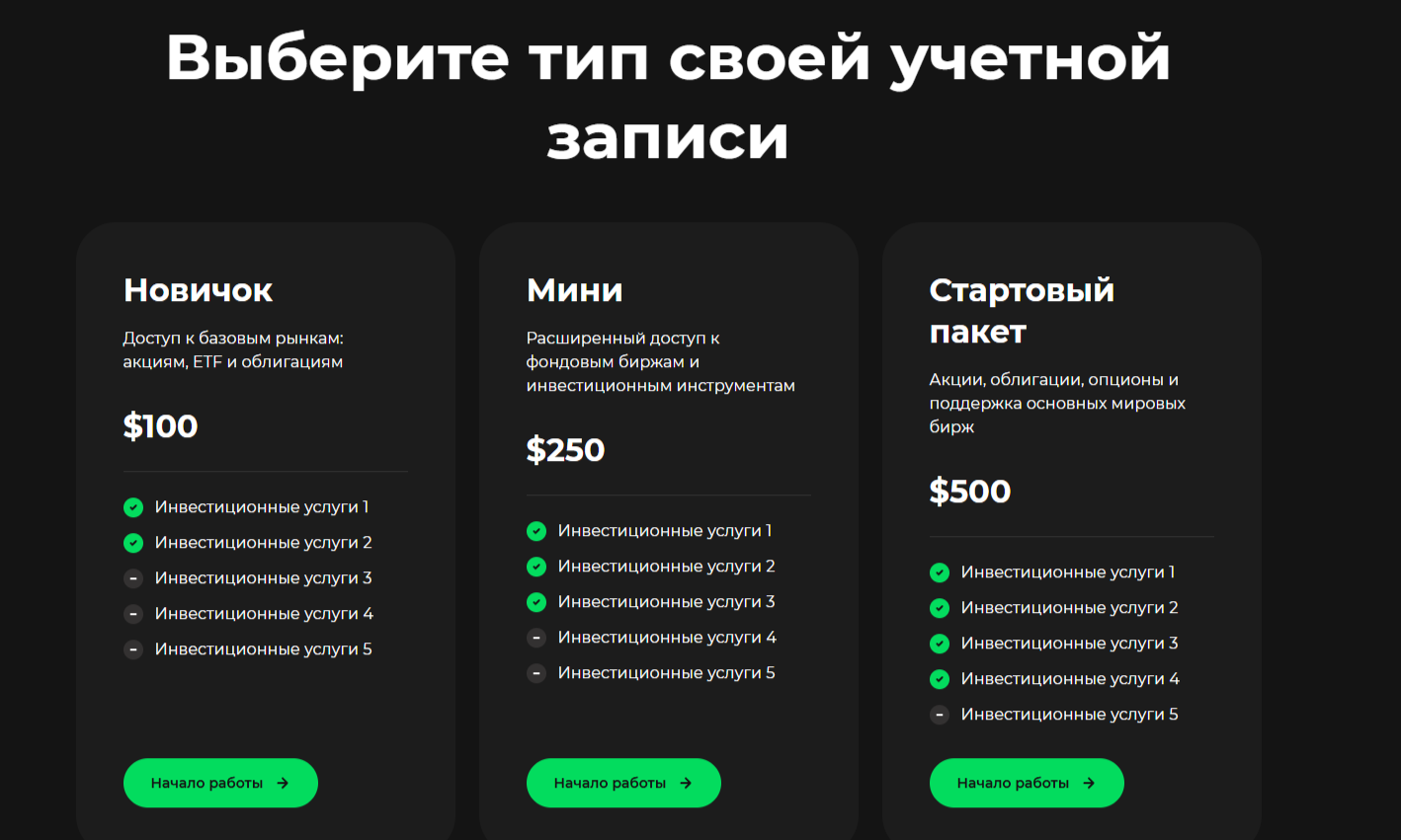 - Mini. Депозит от 250 долларов, доступ к лучшим инвестиционным инструментам.