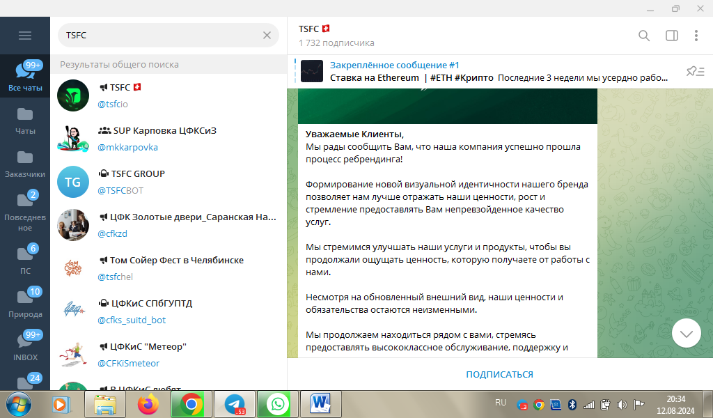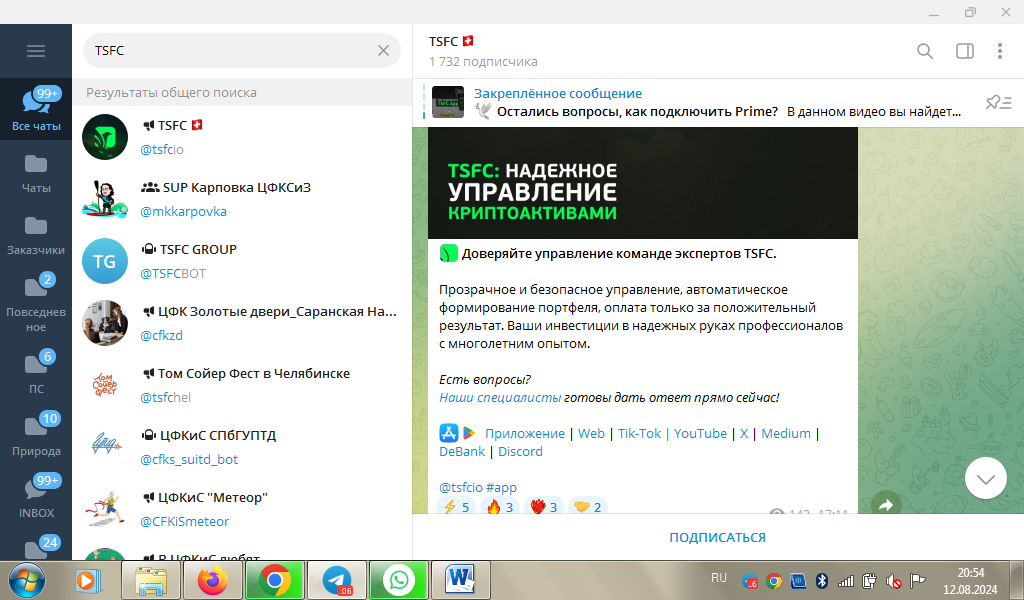 Отзывы о TSFC на тематических площадках отсутствуют. Возможность комментирования постов в официальном канале в Телеграмме не предусмотрена.