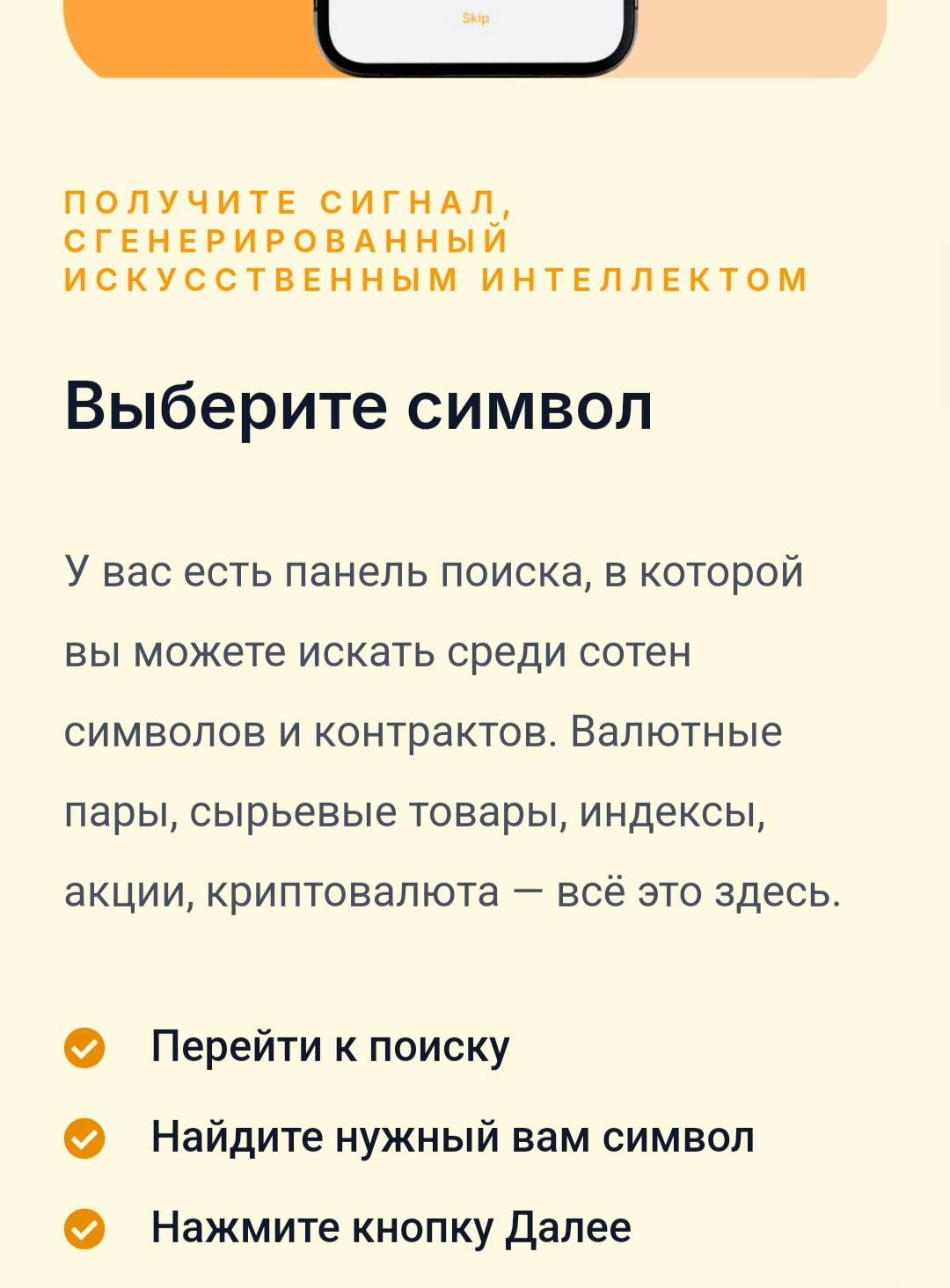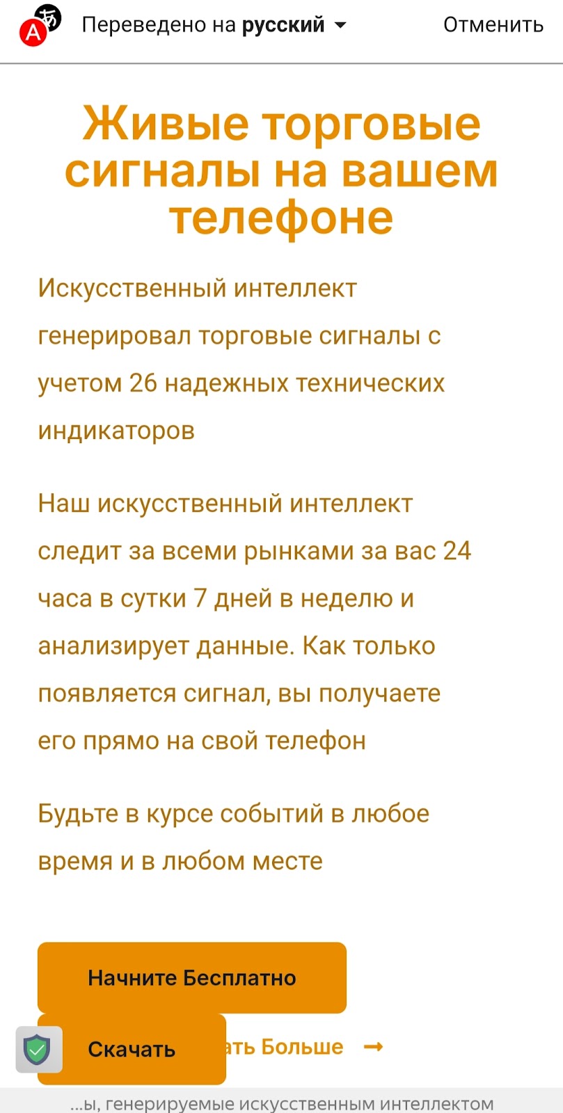 - «Главная»: страница содержит призывы начать зарабатывать с проектом и обещает прибыль каждому, даже без базовых знаний — достаточно просто вложить деньги в покупку доступа к сигналам и начать работу.