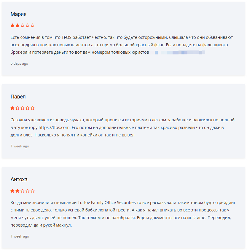 В разоблачениях на Turlov Family Office говорят, что выводить деньги со счета не получится. В отзывах также можно отыскать жалобы о том, что необходимая информация предоставлена только на английском языке, что усложняет взаимодействие с платформой для многих потенциальных клиентов.