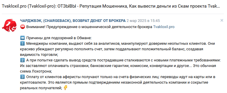 В интернете нашлись отрицательные отзывы о TvakloXil, в них сообщается о блокировке аккаунтов и присвоении денег клиентов. Они сообщают, что за вывод требуют несуществующие комиссии и даже после их уплаты средства не возвращают.
