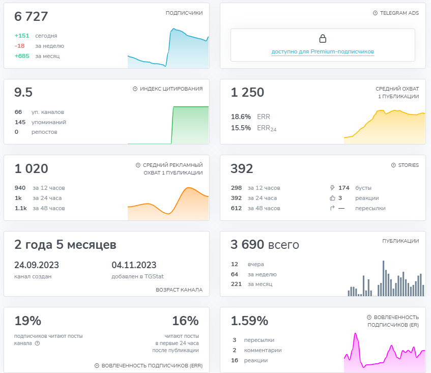 Канал в Телеграмм появился в 2023 году, а из плюсов здесь можно выделить аудиторию в 6000 пользователей, хотя график на TgStat ломаный, да и посты просматривают только 19% подписчиков. Вовлеченность всего 1.59%, но это может быть из-за того, что комментарии практически никто не пишет, а также в сообщениях встречается спам.