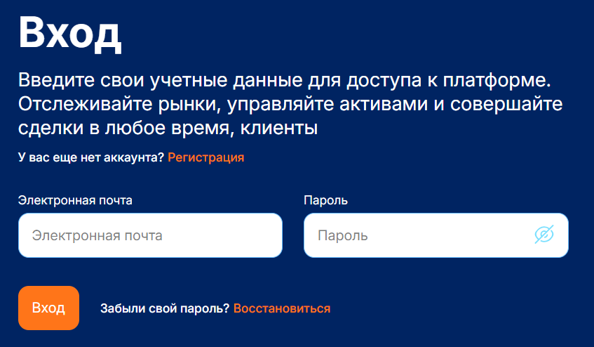 | Демо-счет | Доступен после регистрации |