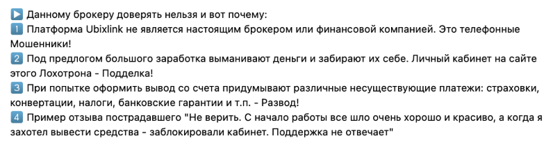 - Ubix Link не предоставляет лицензии, в связи с чем клиент не сможет обратиться в финансовый регулятор в случае возникновения проблем.
