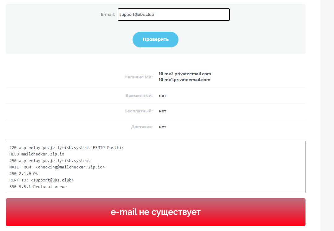 Мы решили проверить контакты авторов — номер телефона и электронную почту. Выяснилось, что e-mail не существует. Из-за этого возникает недоверие к проекту. Также пользователи не могут связаться с создателями платформы напрямую.