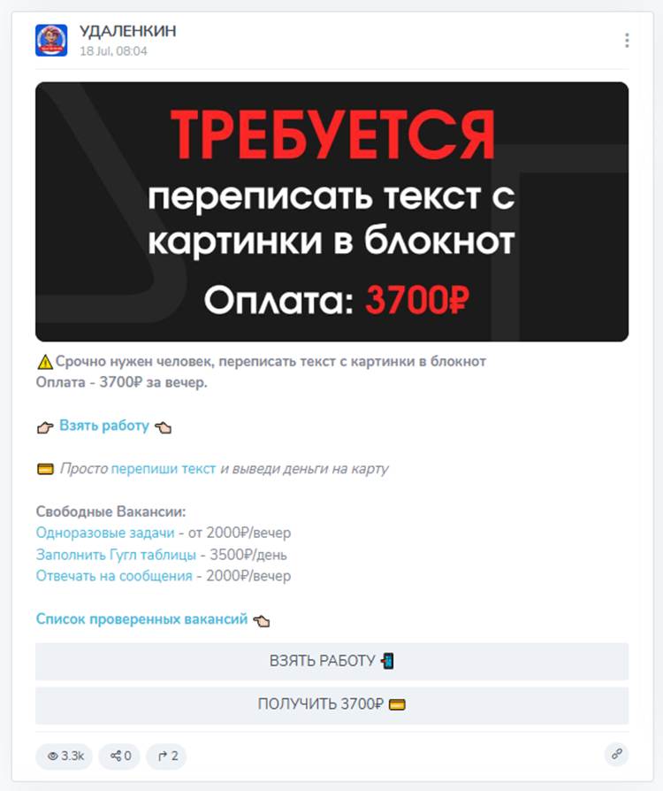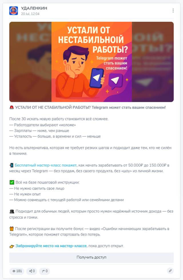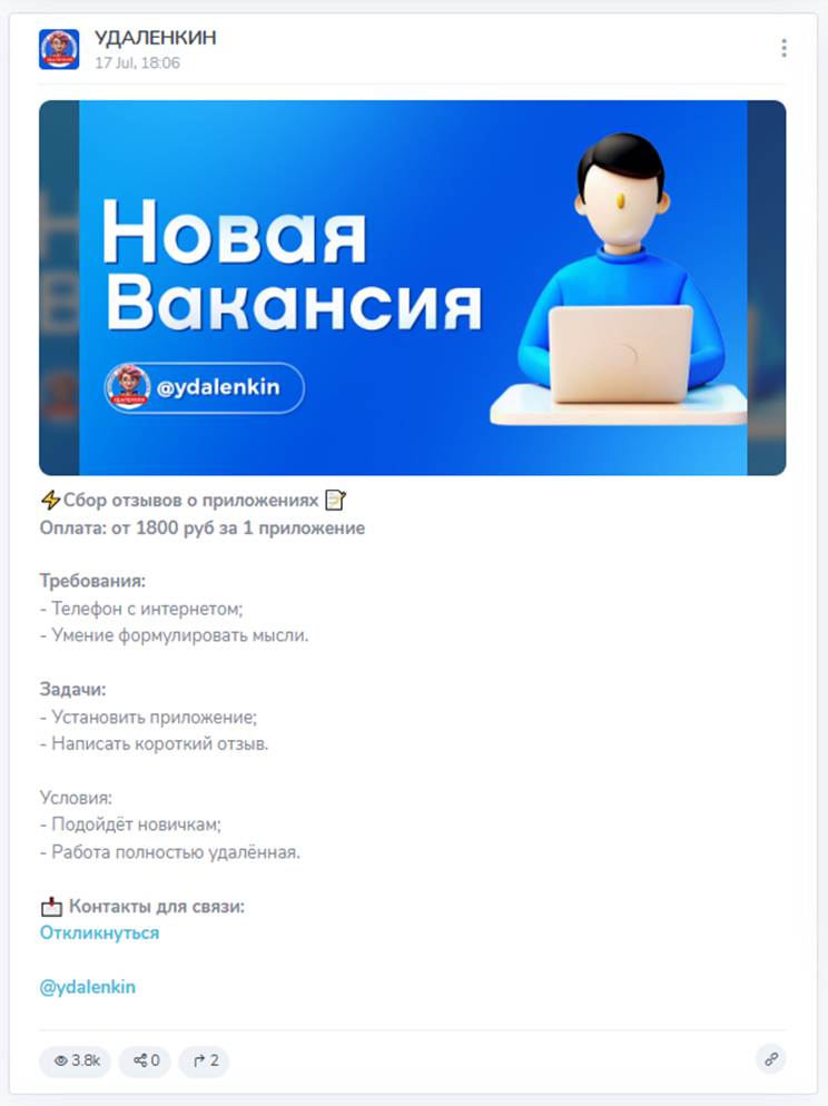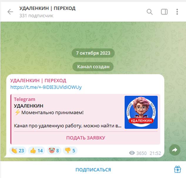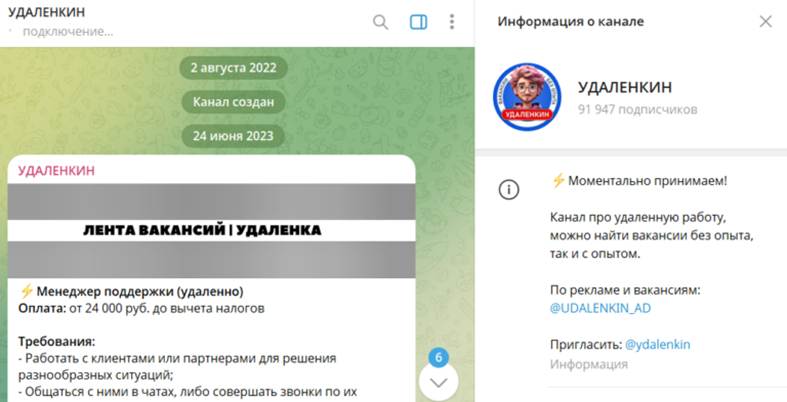 Признаки мошенничества телеграм-канала «Удаленкин»