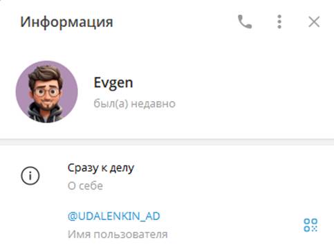 Единственный доступный контакт в Телеграме Udalenkin Ad. Менеджер взял себе ник Evgen, свое лицо он не демонстрирует, скрываясь за аватаркой. В профиле канала есть еще ссылка на бот для формирования пригласительной ссылки Ydalenkin.